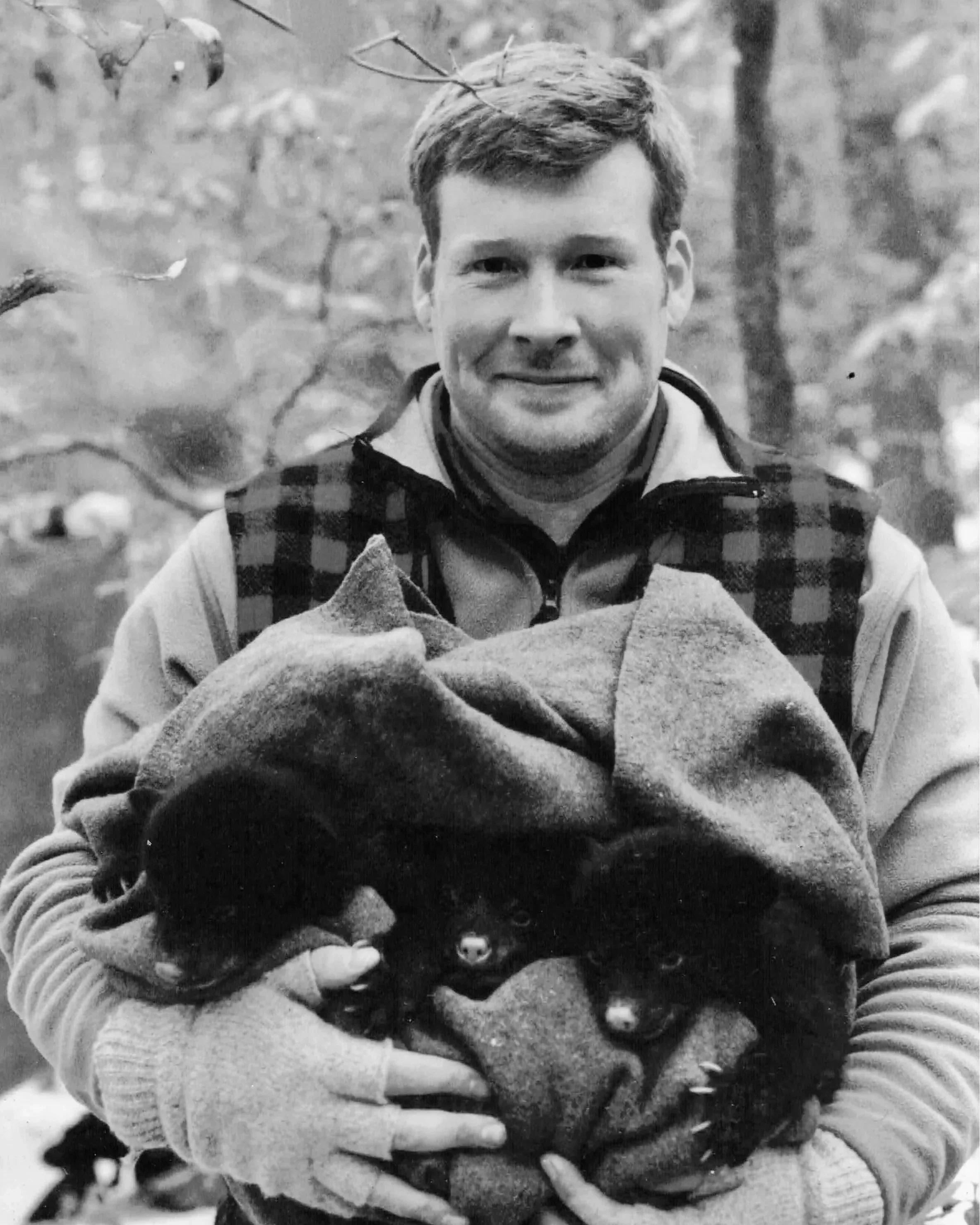 After the stint in the northwest, Mark moved back east, where he landed once again in a bookstore, this time managing a small indie store in Middletown, CT. Biding his time there, he looked for more wildlife work, which materialized in a position with the CT Department of Environmental Protection studying the state’s burgeoning black bear population. As opposed to the non-invasive grizzly work, this was hands-on. Mark trapped, tagged, and collared black bears, mapping their home ranges, and when winter came, identifying the females’ dens where he returned later to monitor their health and count and measure their cubs.